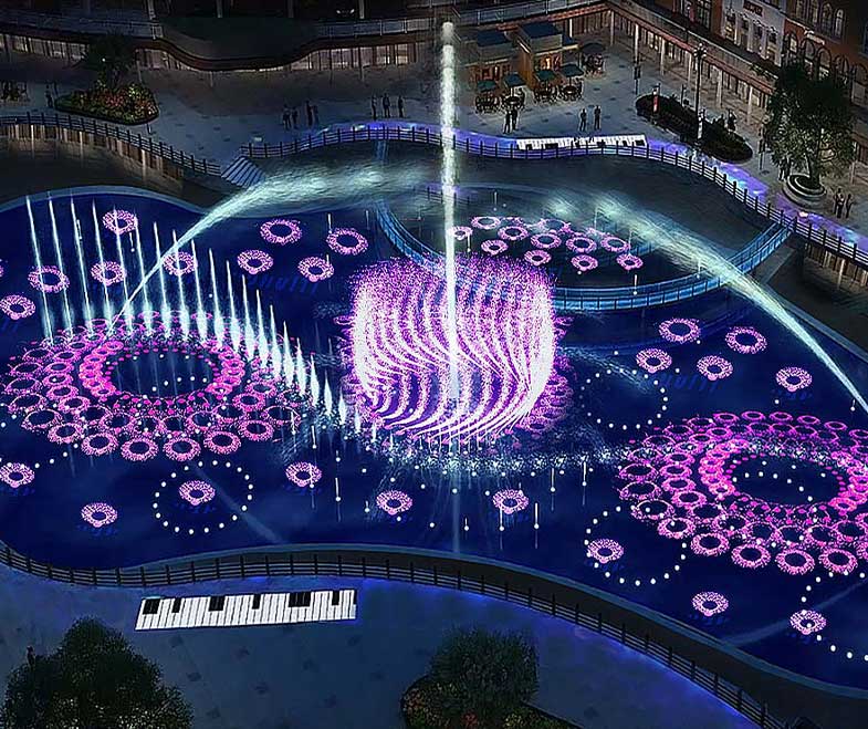 運用水力學、光學、聲學等多種科學原理,結合多種現代科學系統所制造的一種立體型、動感型的傳播媒介。水體在水秀的設計施工有自己對水的獨特理解。